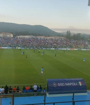 Castel di Sangro – Secondo tempo che inizia con un solo cambio, Lozano fa spazio a Lobotka. Al minuto 14 ghiottissima occasione per il Napoli, Lobotka pressa il portatore palla della squadra spagnola e recupera la sfera, palla a Zerbin che si invola accompagnato da Zedadka, 2 contro uno palla a Zedadka che a tu per tu si lascia prendere dall’emozione e calcia sul portiere. Cambi al minuto 16 entra l’artiglieria pesante, Meret, Rrahmani, Di Lorenzo, Oliveira, Anguissa, Zielinski, kvaratskhelia, Politano e Raspadori. Si creano occasioni da una parte e dall’altra ma il risultato non cambia. La partita termina 1-1 ma non finisce, si deciderà tutto ai rigori (decisione presa pochi minuti prima del match).