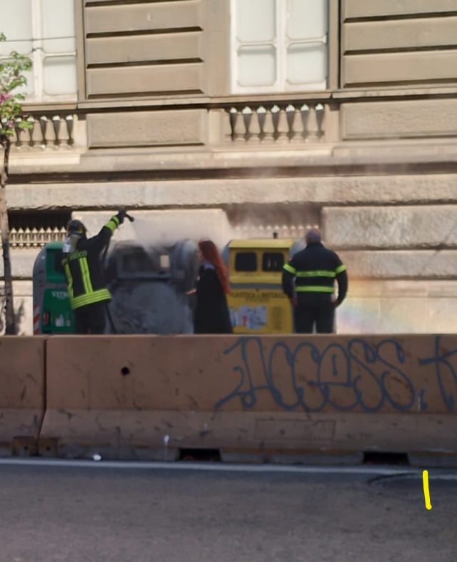 Due cassonetti sono stati bruciati stamattina 27 aprile 2023 a causa delle fiamme divampate alle 10 al Corso Umberto I all’altezza del palazzo dell’università Federico II.