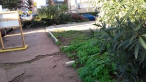 Per non parlare del verde. Oltre all’abbattimento iniziale di vari alberi di alto fusto (necessario per i lavori), i giardini di fronte alla chiesa nonché le aiuole di via Bakunin appaiono nel più totale abbandono: tronchi d’albero , erbacce altissime, rifiuti a tutto spiano e un proliferare di insetti particolarmente aggressivi.