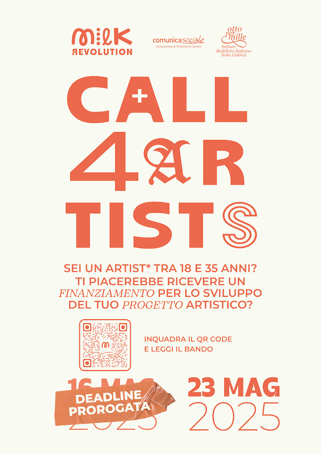 Per consultare il bando completo visitare il sito https://comunicasociale.eu/milk-revolution/. Per maggiori informazioni scrivere via email a comunicasociale@gmail.com o contattare il numero 333.1584836.