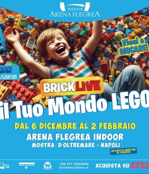 Prodotta da Arena Flegrea e Alta Classe Lab, Brick Live offre la possibilità di trascorrere liberamente momenti di straordinario divertimento, in un ambiente stimolante ed educativo, dove ogni visitatore potrà diventare un provetto artista. Impara, costruisci e gioca, questo il motto di Brick Live che propone un’esperienza unica con tanti milioni di mattoncini LEGO® e la possibilità di giocare insieme in uno spazio ricco di colori ed emozioni senza età.