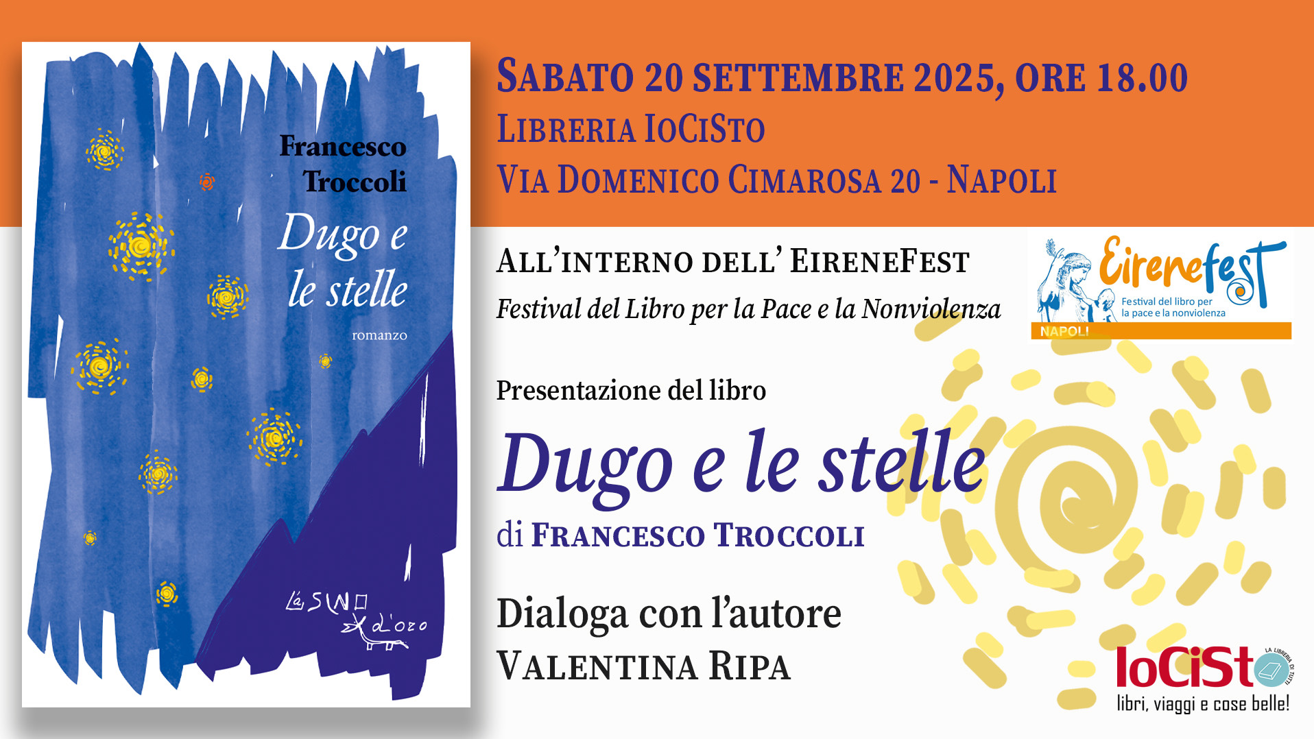 FRANCESCO TROCCOLI, romano, orgoglioso disertore dalla carriera in una multinazionale farmaceutica, ha pubblicato i romanzi Ferro Sette (2012), Falsi dei (2013), Mondi senza tempo (2016) e la raccolta di racconti Domani forse mai (2012). Per L’Asino d’oro edizioni è uscito nel 2020 il suo precedente romanzo Mare in fiamme (2020).