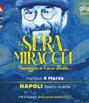 Il mito di Lucio Dalla rivive a Napoli nel giorno del suo compleanno. Il 4 marzo 2025 al Teatro Acacia va in scena “La sera dei Miracoli” l’omaggio al grande cantautore bolognese scomparso nel 2012. Uno spettacolo speciale per rivivere la storia musicale di uno dei più grandi autori del nostro tempo con la produzione di Good Vibrations Entertainment. I biglietti per assistere allo spettacolo, organizzato da Veragency in collaborazione con Berti Live e Mentiassociate, sono già disponibili in prevendita su Ticketone, Go2 e presso il botteghino del teatro Acacia (tel. 0812155639).