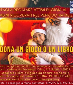 · Acquista un giocattolo o un libro e consegnalo o spediscilo presso la sede ABIO in via Francesco Cilea, 165 – 80127 Napoli (Na);