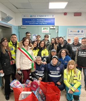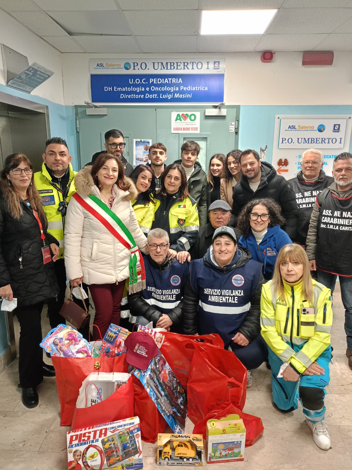 Cuore pulsante dell’evento è stato il progetto solidale “Giocattolo Sospeso”, grazie al quale sono stati raccolti numerosi doni destinati ai bambini ricoverati nei reparti pediatrici. I giocattoli sono stati consegnati il 6 gennaio presso l’Ospedale Umberto I di Nocera Inferiore, portando un messaggio concreto di vicinanza e speranza.